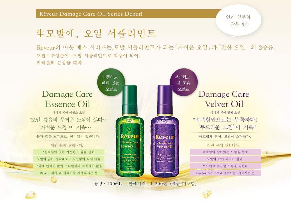 보라색 Reveur는, 광택이 나고, 촉촉한 모발을 원하시는 분에게 안성맞춤.
